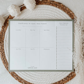 Bordé de couleur sauge, ce planificateur de repas vous donnera le goût d'organisé vos repas chaque semaine.